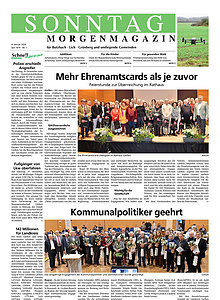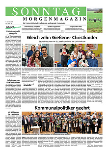 ePaper Ausgaben Sonntag Morgen-Magazin Marburg 04.01.2026 | 10 Seiten | 6 MB PDF herunterladen Sonntag Morgen-Magazin Stadt Gießen 04.01.2026 | 12 Seiten | 7 MB PDF herunterladen Sonntag Morgen-Magazin Kreis Gießen 04.01.2026 | 10 Seiten | 7 MB PDF herunterladen